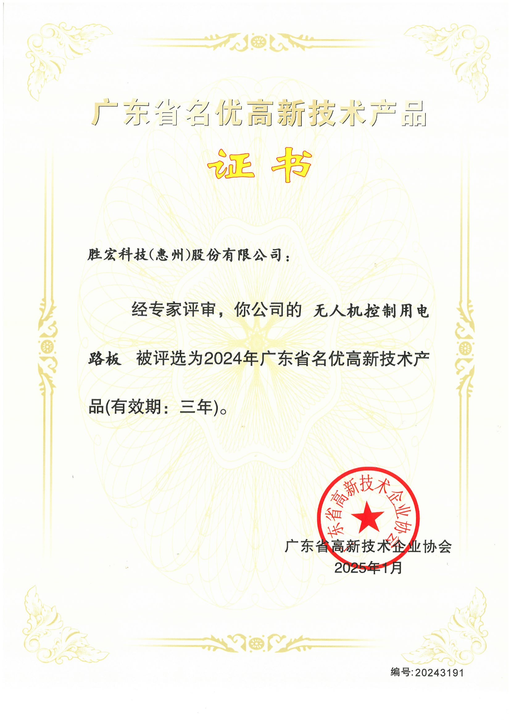 “無(wú)人機(jī)控制用電路板”高新技術(shù)產(chǎn)品證書
