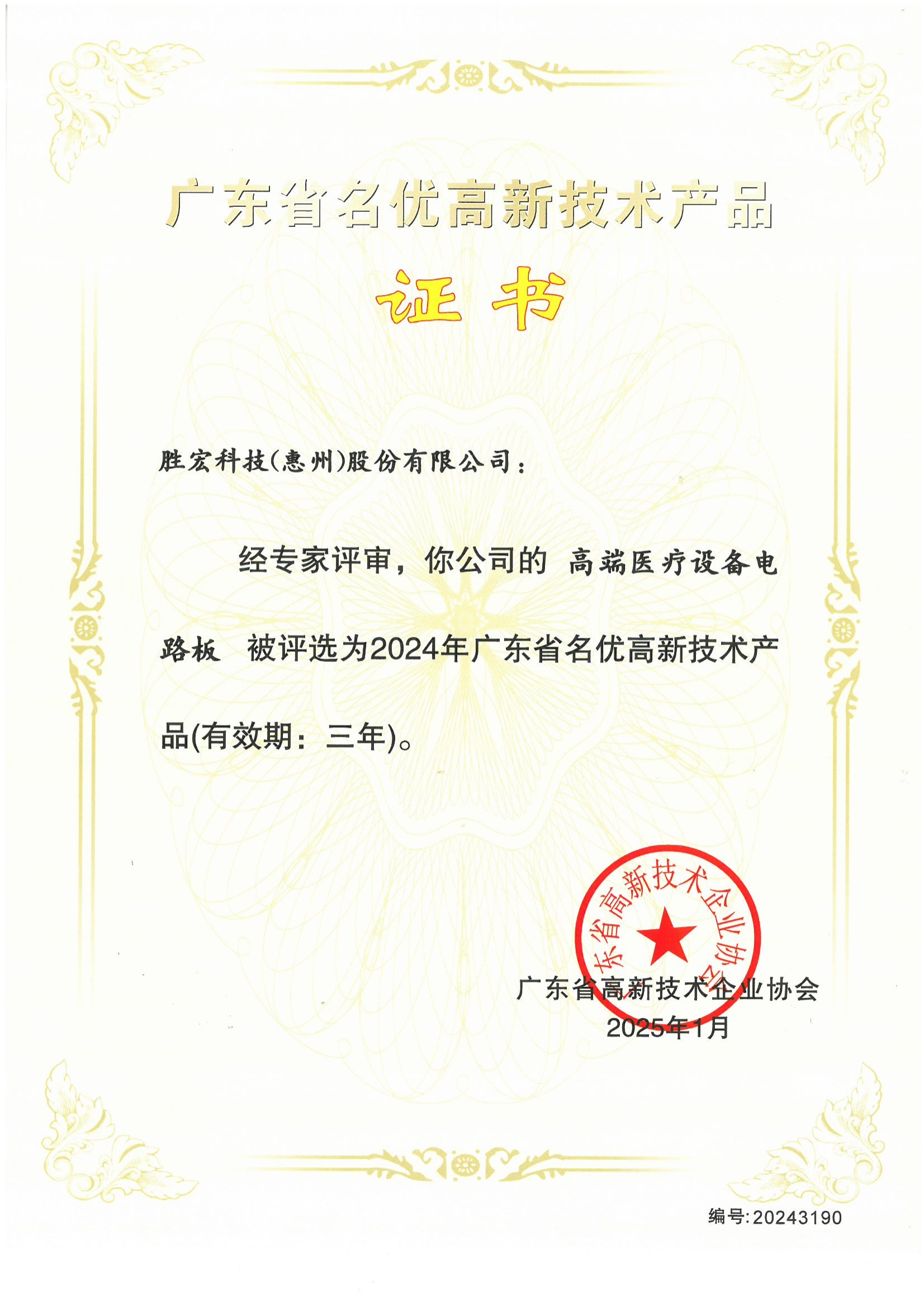 “高端醫(yī)療設(shè)備電路板”高新技術(shù)產(chǎn)品證書