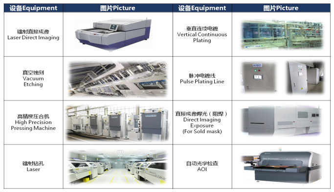 § 設(shè)備:壓機(jī)、鐳射五代機(jī)、VCP填孔、全制程DI設(shè)備、真空蝕刻等業(yè)界高端主流設(shè)備。