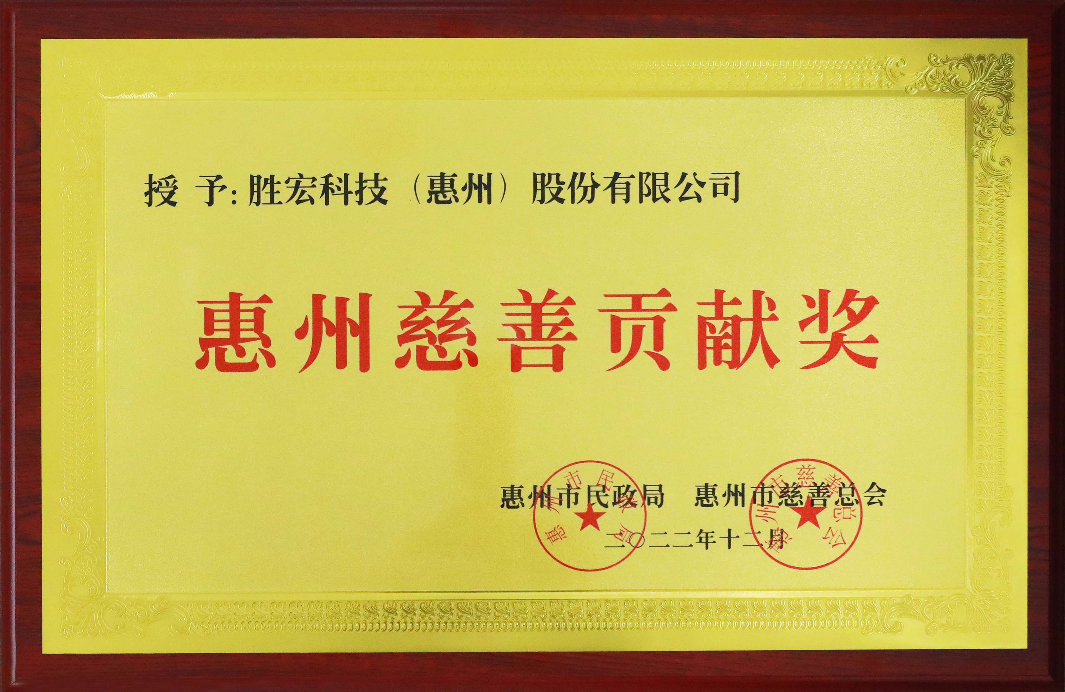 獲得2022年惠州慈善貢獻(xiàn)獎